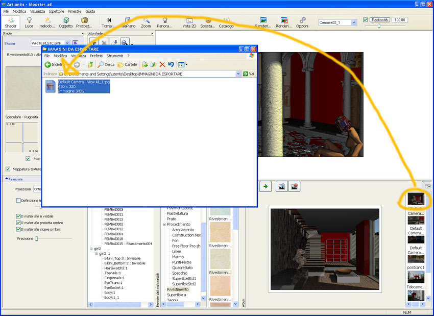 Nota Bene: Le cartoline salvate nuovamente nel software di ritocco immagini diventano inutilizzabili in Artlantis, in quanto le informazioni correlate a shader e texture saranno perse definitivamente.