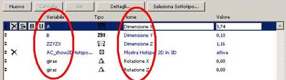 Nella colonna “Variabile” inseriamo nella prima riga “girax” e nella seconda “giraz” mentre nella colonna “Nome” il nome che vogliamo dare ai nostri comandi; logicamente sarebbe giusto scrivere “Rotazione X” e “Rotazione Z” ma si poò scrivere qualsiasi cosa.