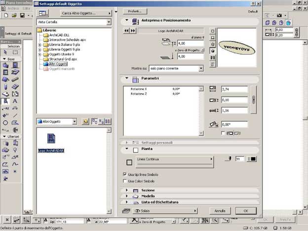 Il nostro nuovo oggetto sarà immediatamente disponibile nelle librerie caricate di ArchiCAD e presenterà solo due comandi nella lista dei parametri: le due rotazioni che abbiamo inserito.