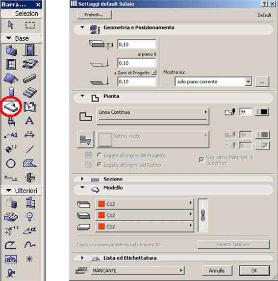Usando lo strumento solaio otterremo un solaio ….ed il nostro oggetto è bello che sdraiato a terra.