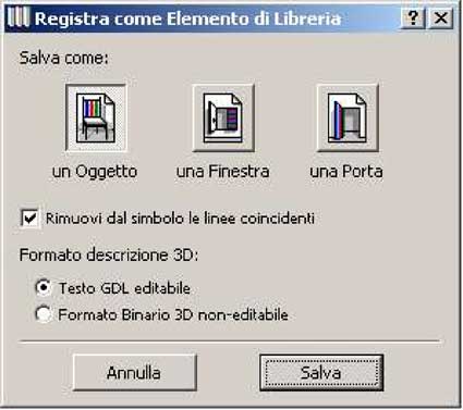 Adesso andiamo direttamente sul menu “Archivio – Oggetti GDL – Salva Modello 3D come…” e lo salviamo come oggetto con “Testo GDL editabile”