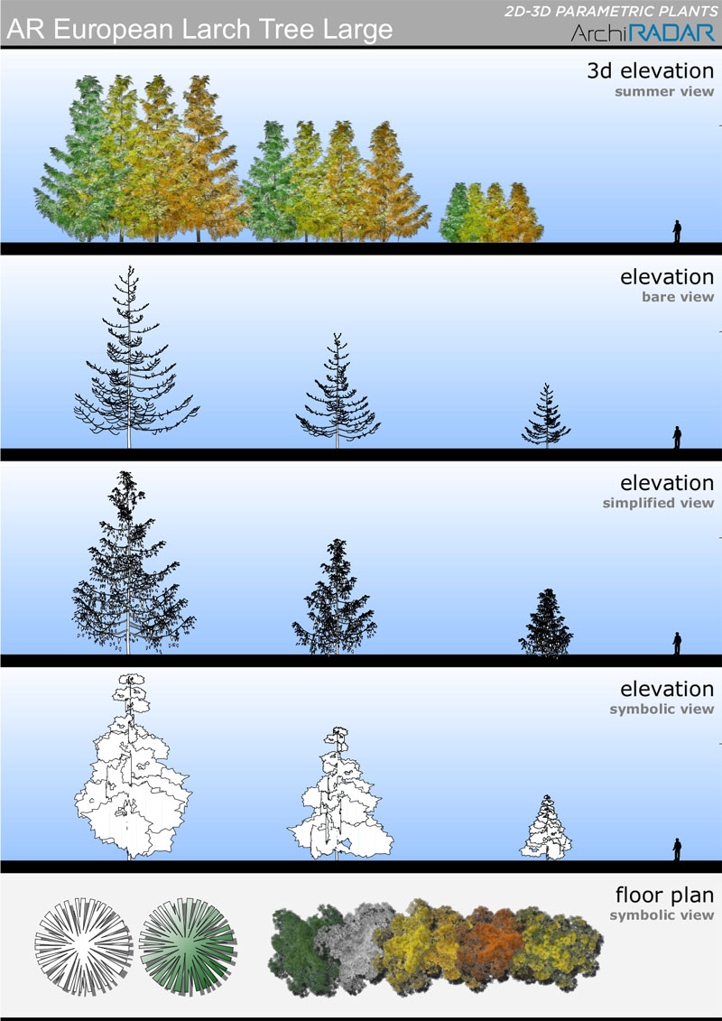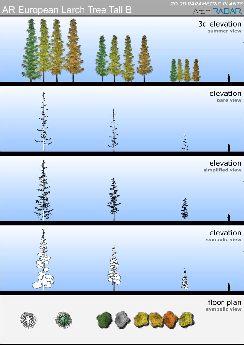 The objects are made with a low polygon quantity, they have a real growing factor according to the size and a corresponding symbolic view in elevation. Optimized for BIMX.