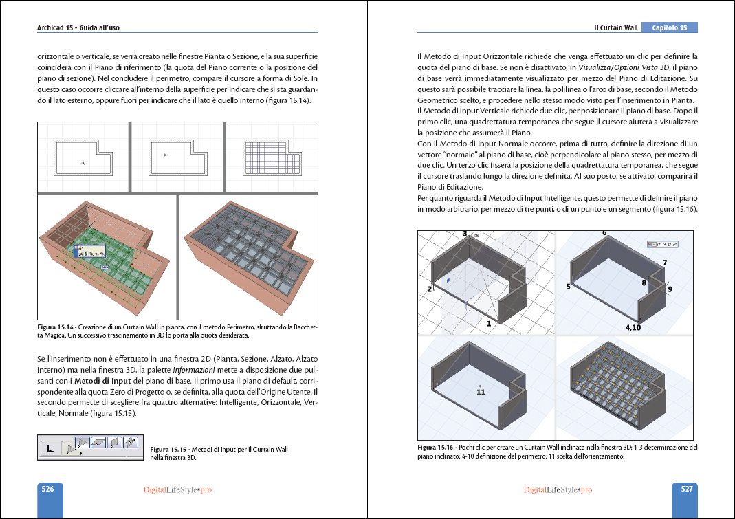 In questa edizione abbiamo voluto inserire molti tutorial e suggerimenti utili per il lavoro quotidiano del progettista, con esempi pratici su come realizzare i disegni comparativi (gialli/rossi), su come lucidare un estratto cartografico, realizzare un inserimento fotografico del modello e altro ancora. Adesso non ci sono più scuse per imparare ad usare ArchiCAD: all'interno del manuale troverete tutto ciò che avrete bisogno di sapere spiegato in modo semplice e chiaro e corredato da immagini di esempio. Questo non è un semplice manuale, ma è IL Manuale per apprendere l'uso di ArchiCAD o anche solo per approfondire le novità della versione 15.