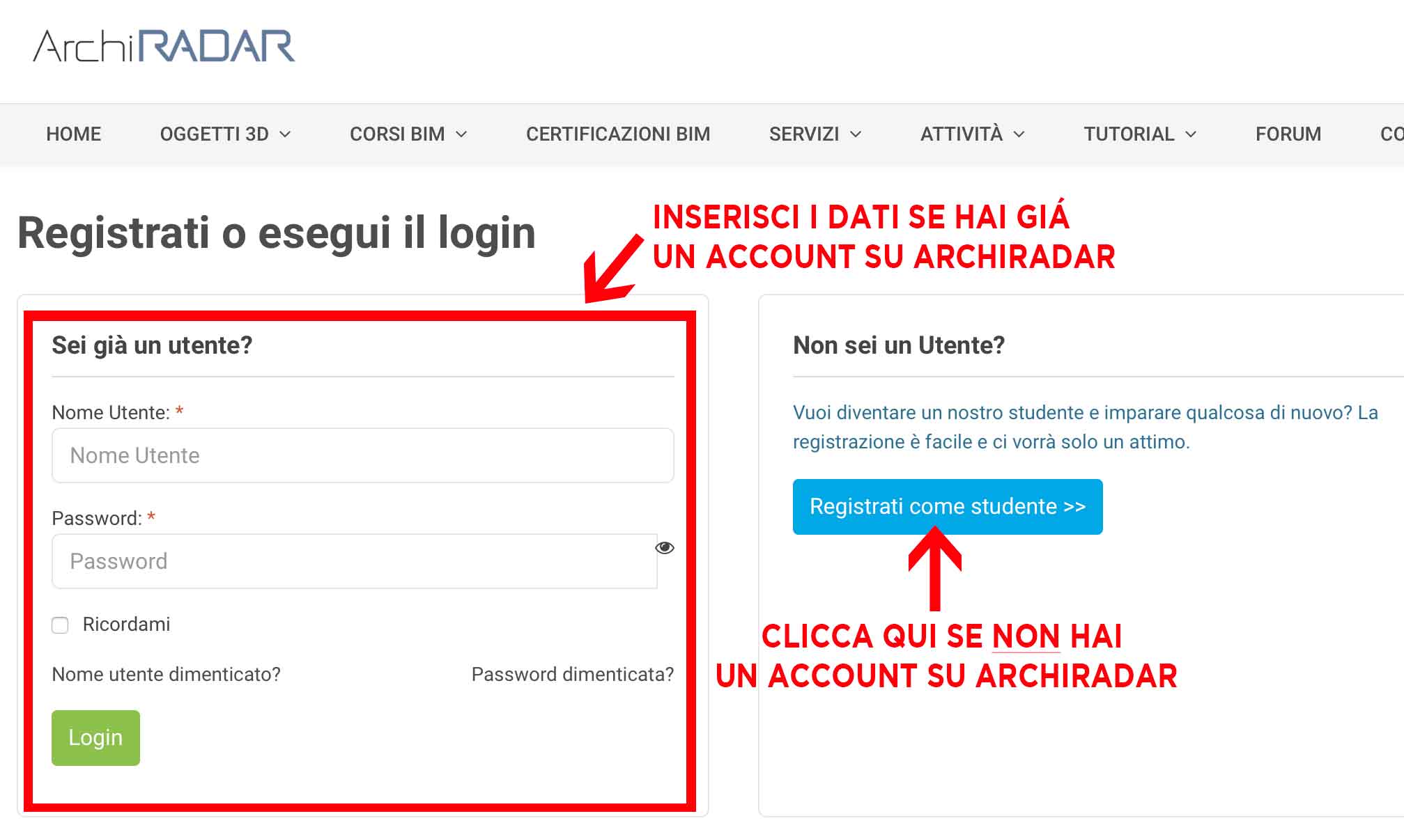 3- Se non siete già registrati al sito dovrete creare un nuovo account. Cliccate quindi sul pulsante "Registrati come studente":